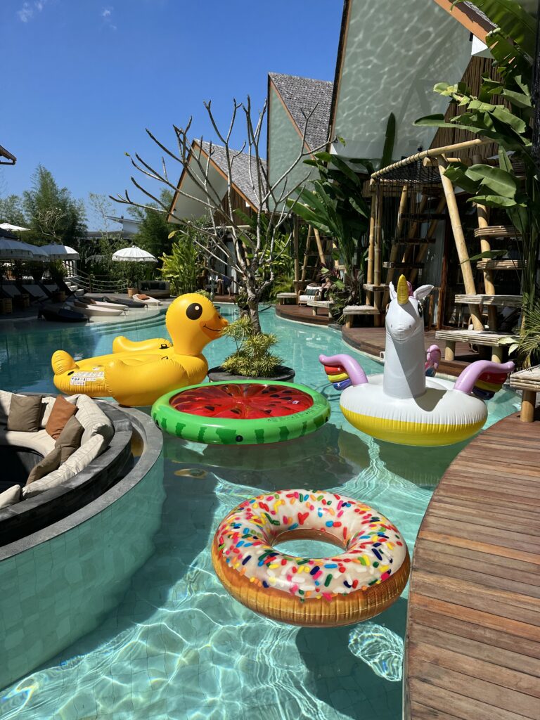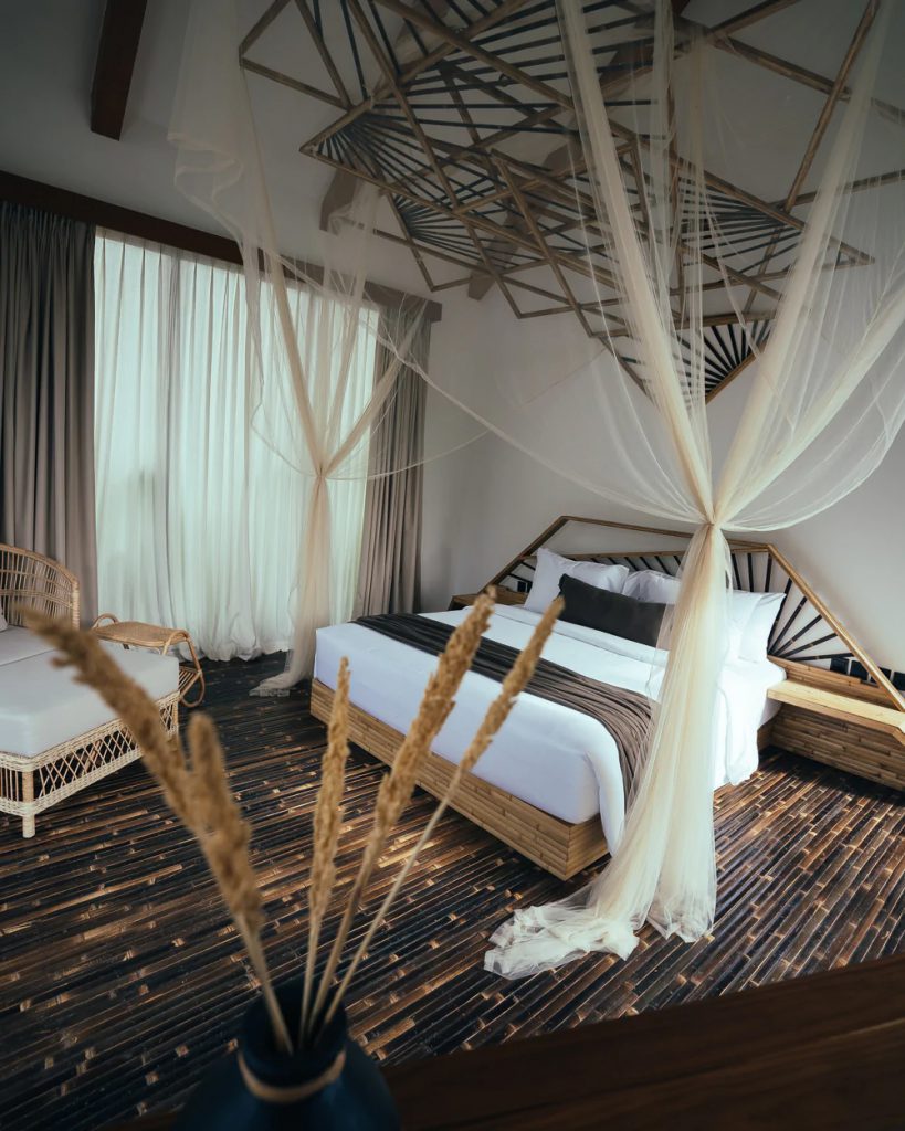 Each uniquely themed Bungalow comes with a king-sized bed, work desk, custom bath tub, waterfall shower, swim deck fronting the EPIC pool, private hammock, strong wifi, ceiling fan and air-conditioning.